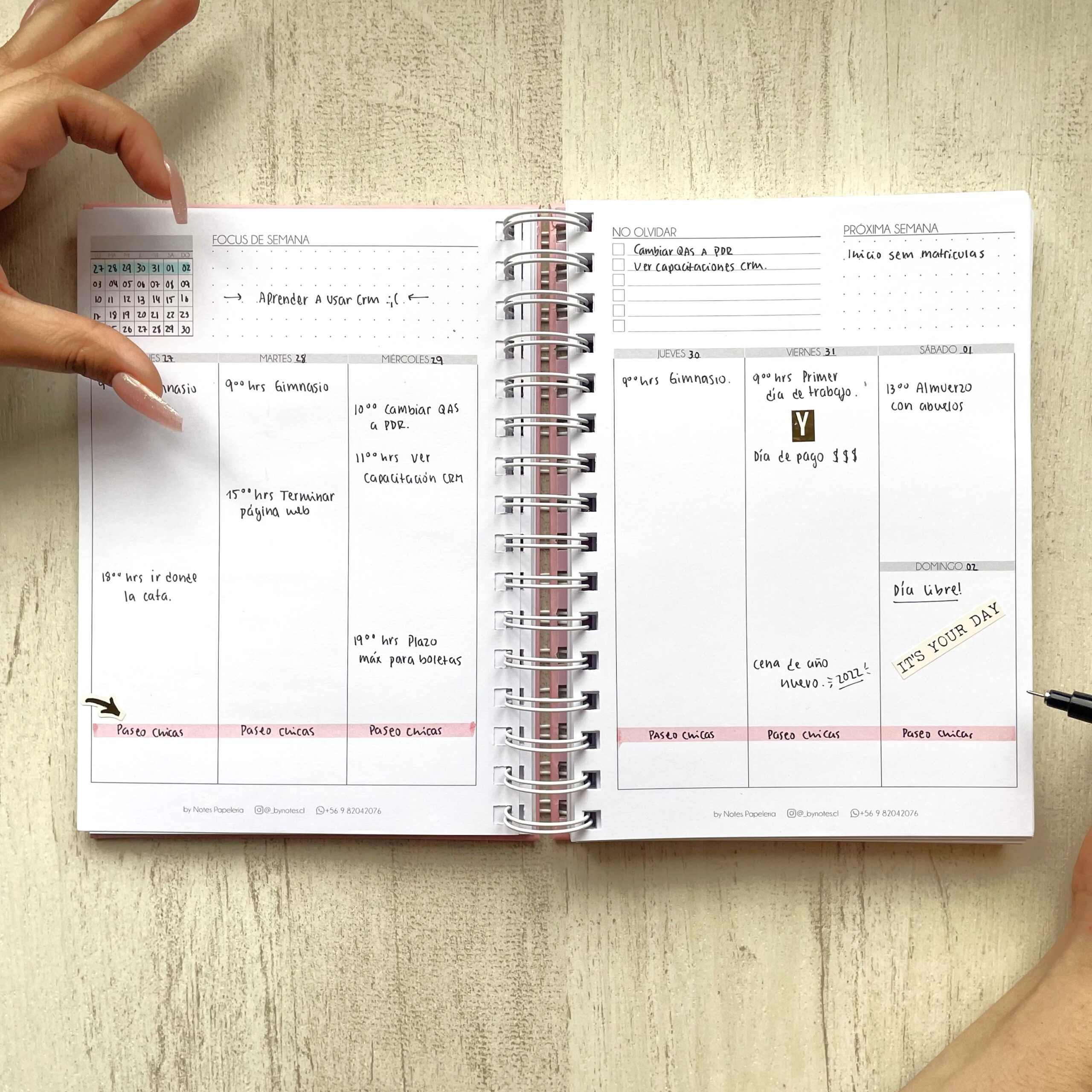 • Contraportada con sección «No olvidar» para poder pegar post it.